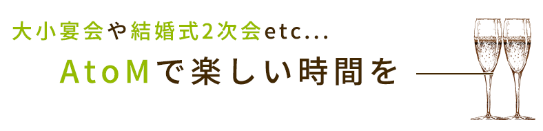 アットホームでカジュアルな店内には、シーンにあったお席を様々に設えています。1人飲みやデートにはカウンター席が、グループ利用にはテーブル席がおすすめです。また全席でカラオケがご利用いただけることに加え、ダーツ台も備えています。たくさん飲んで、思う存分遊べば、1日の疲れも自然と癒やされるはずです。ふと、お酒が恋しくなった際はAtoMへぜひ。