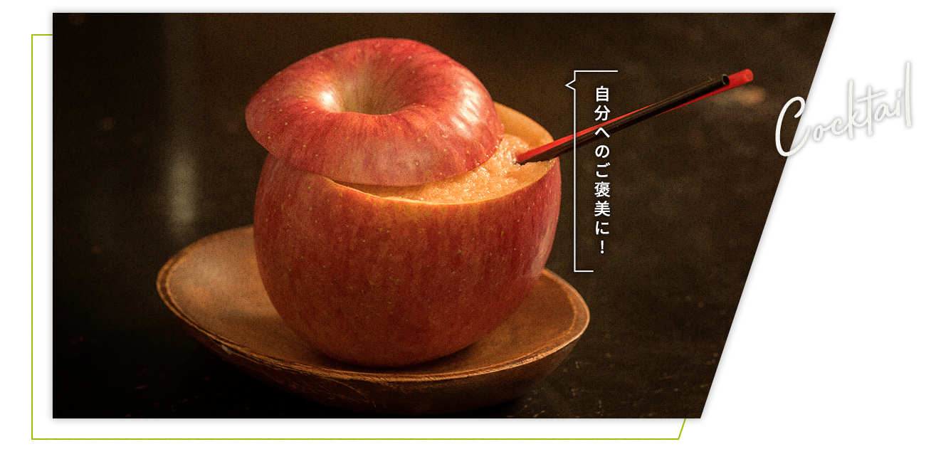 りんご1個分の果肉をたっぷりと詰め込んだ1杯は、新鮮なりんごをグラスに見立て、見た目にも楽しい仕上がりに。